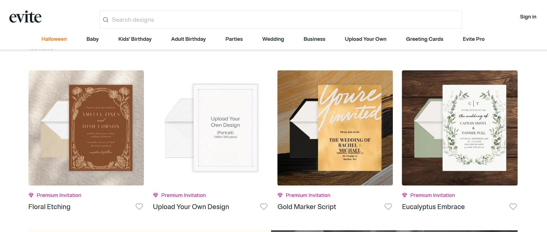 Sau khi đăng nhập, tìm kiếm "thiệp mời" hoặc "invitation" trong thanh tìm kiếm. Bạn có thể lọc theo các loại sự kiện như: